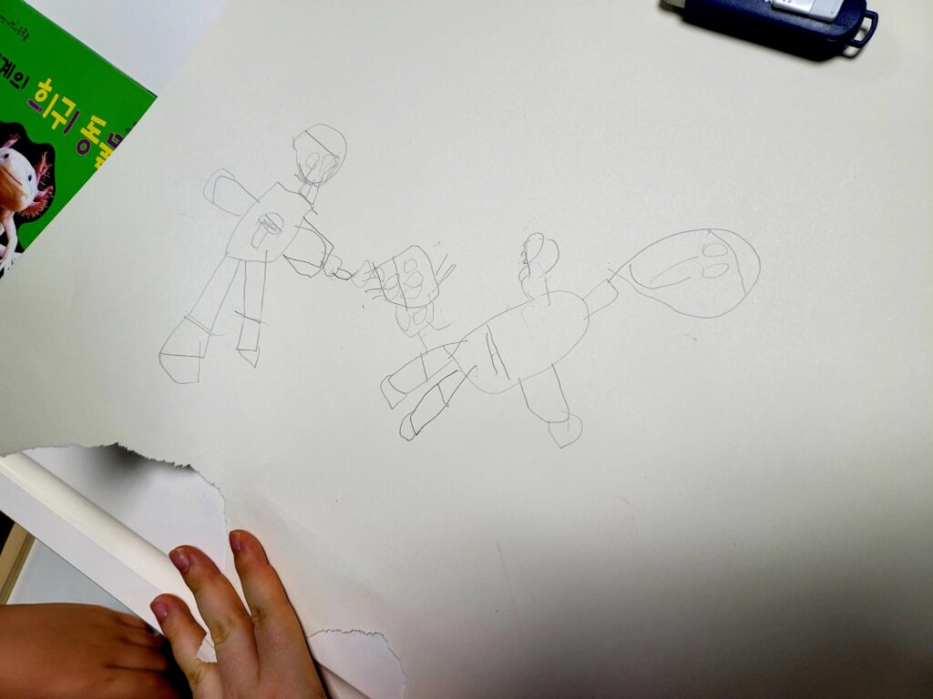 몇 달 전에는 연필 잡는것도 잘 못했었는데 어느새 꽤 사람담게 그릴 수 있게 되었다.